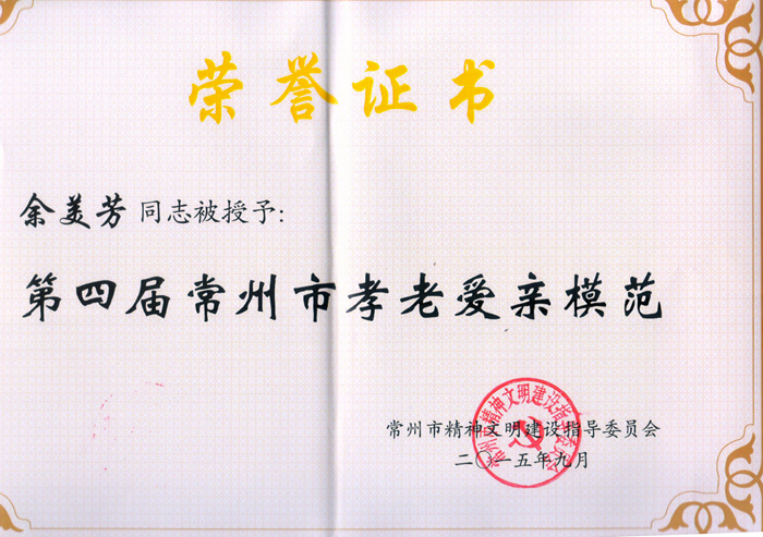 我院余美芳老師獲評2015年常州市道德模范