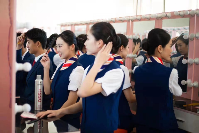 “全景式模擬”實(shí)訓(xùn)教學(xué)環(huán)境。建有教育教學(xué)、技能實(shí)訓(xùn)和應(yīng)急事件處理的一體化仿真模擬訓(xùn)練艙(建設(shè)中)、形體訓(xùn)練室、形象塑造室、飛機(jī)模型展廳等教學(xué)實(shí)訓(xùn)基地。