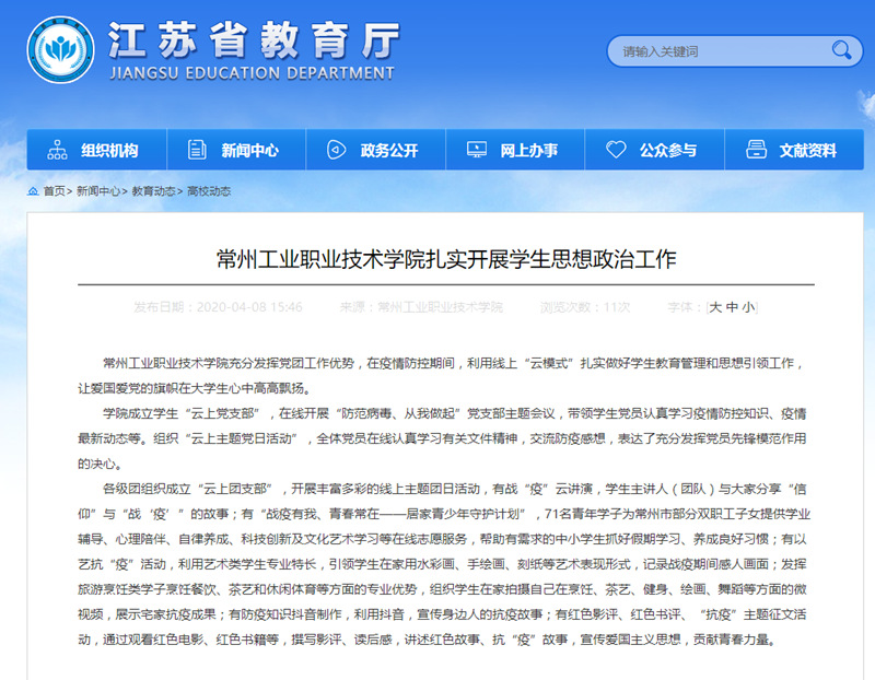 作者:江蘇省教育廳來源:江蘇省教育廳發布時間:2020年04月09日點擊數:328