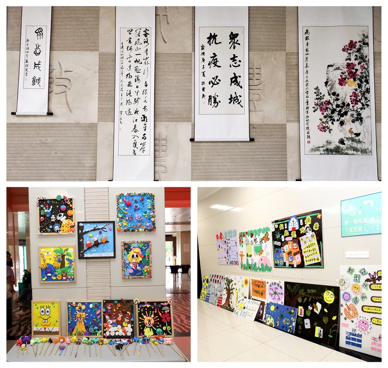 本次作品展主要設立書畫作品和手工作品兩大展區。在書畫作品展區,師生們以筆為劍,以心為紙,用愛研墨,通過一幅幅書法作品,凝心聚力,鼓舞斗志,為這場防疫阻擊戰貢獻一份力量。在團委周穎老師的國畫作品“為報平安四季春”、藝術創意學院李斌老師的剪紙作品“三不娃娃”、海外教育學院孫愛民老師的軟筆作品“眾志成城 抗疫必勝”、藝術創意學院學生的水彩作品“武漢加油”“疫情之后”等作品中,我們深深感受到學校師生用自己手中的筆謳歌勞動美,禮贊抗“疫”行。