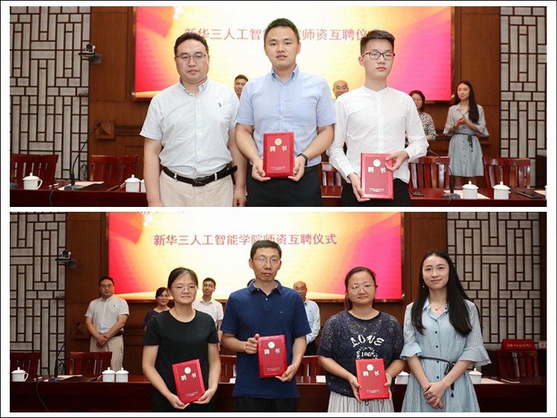 隨后,楊勁松和梁新平共同為“新華三人工智能學院”揭牌。吳麗云和新華三集團江蘇代表處副總經理謝莉簽署校企合作框架協議。學校教務處處長徐偉為新華三企業導師發放聘書。新華三大學校企合作部總監饒雙燕為學校導師代表發放聘書。