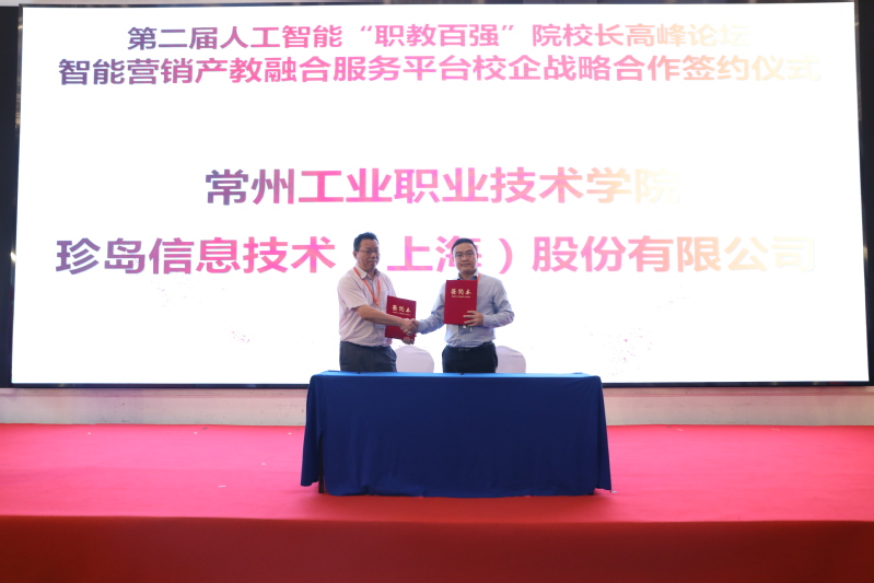 在此次高峰論壇上,“全國智能營銷產教融合聯盟”正式成立,我校入選副理事長單位,楊勁松校長當選副理事長。校企合作處處長褚守云代表學校與珍島集團簽署圍繞智能營銷高端應用型人才培養簽署校企合作協議。