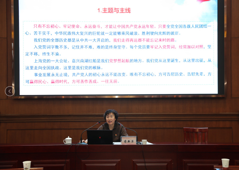 蔣新萍以“《習(xí)近平談治國理政》第三卷學(xué)習(xí)導(dǎo)讀”為主題,圍繞《習(xí)近平談治國理政》第三卷的出版意義、主要內(nèi)容、理解維度及學(xué)習(xí)方法四方面帶領(lǐng)大家進(jìn)行了系統(tǒng)學(xué)習(xí),她指出:《習(xí)近平談治國理政》第三卷生動記錄了黨的十九大以來以習(xí)近平同志為核心的黨中央,著眼中華民族偉大復(fù)興戰(zhàn)略全局和世界百年未有之大變局,不忘初心、牢記使命,統(tǒng)攬偉大斗爭、偉大工程、偉大事業(yè)、偉大夢想,團(tuán)結(jié)帶領(lǐng)全黨全軍全國各族人民推動黨和國家各項(xiàng)事業(yè)取得新的重大進(jìn)展的偉大實(shí)踐,集中展示了馬克思主義中國化的最新成果,充分體現(xiàn)了我們黨為推動構(gòu)建人類命運(yùn)共同體貢獻(xiàn)的智慧方案,是全面系統(tǒng)反映習(xí)近平新時代中國特色社會主義思想的權(quán)威著作。