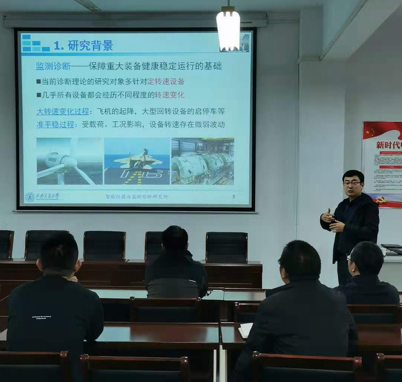趙明的講座帶來了前沿的變工況定量化診斷技術,令參與講座的博士們大開眼界,領略了裝備智能診斷的新技術新工藝。機械裝備監測與診斷是保障航空、航天、能源、化工等領域眾多關鍵裝備安全穩定運行的基礎。許多重要裝備例如風電、高鐵等往往運行于變速-變載的復雜服役工況,工況的連續變化使得傳統監測診斷理論與技術不再有效,大量故障無法被準確識別與預測,給工業生產帶來了巨大的經濟損失。