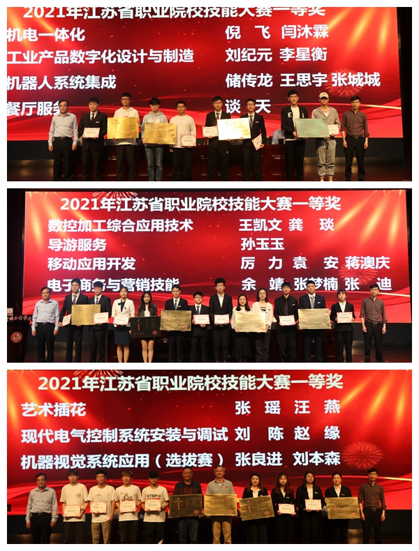 吳麗云宣讀了《關(guān)于表彰2020年全國職業(yè)院校技能大賽改革試點(diǎn)賽、2021年江蘇省職業(yè)院校技能大賽獲獎團(tuán)隊(duì)的決定》。施新平解讀了“建軍杯”學(xué)生技能競賽節(jié)總體方案。學(xué)校領(lǐng)導(dǎo)為獲獎團(tuán)隊(duì)頒發(fā)了獎牌和榮譽(yù)證書。