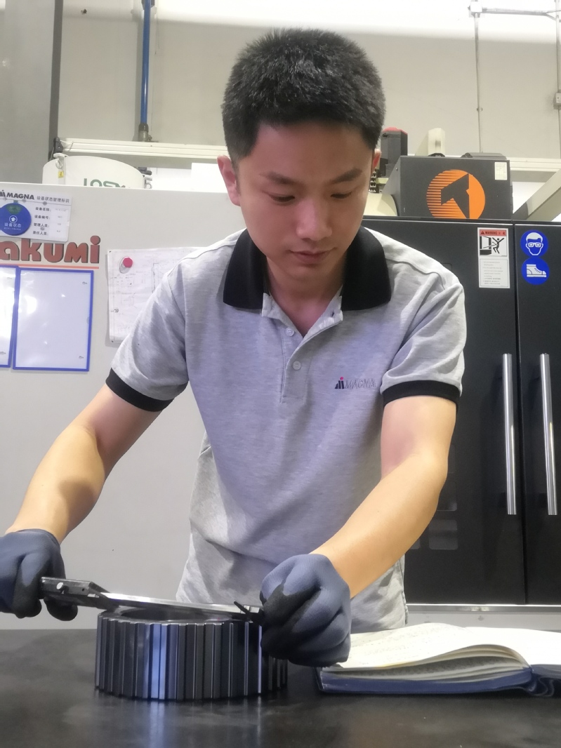 “我的技術,就是從開發這個電主軸慢慢積累起來的?!睏畛蓪蠋熀凸境錆M感激。也就是憑著這樣的頂尖技術,2016年6月,楊成成功應聘,成為麥格納汽車系統(常州)有限公司的一名機加工專員,專門負責公司的沖壓、加工的技術指導,時間不長,就做了機加工主管。