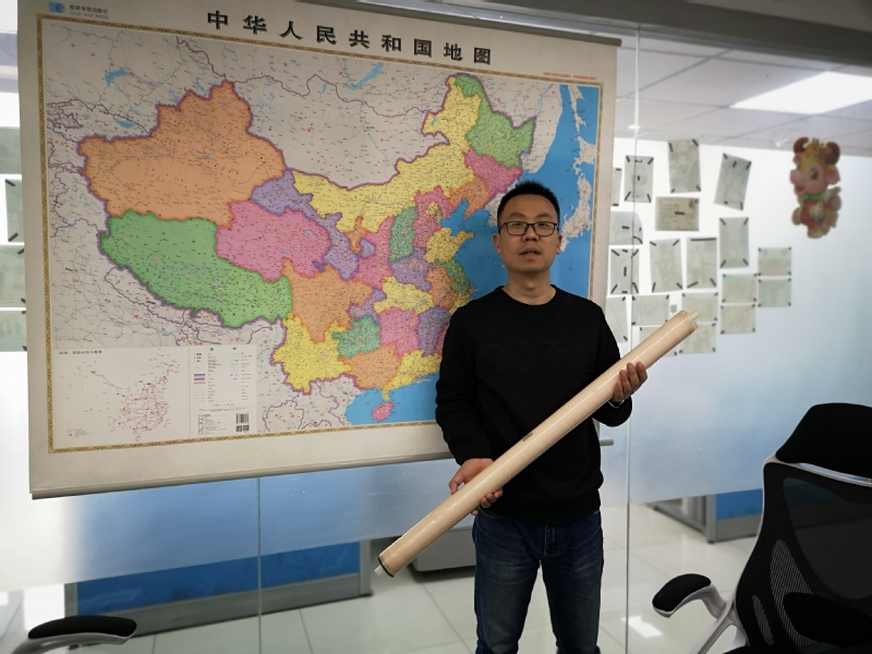 他手里拿著公司主打產(chǎn)品為我講解全國各地營銷點(diǎn)的情況