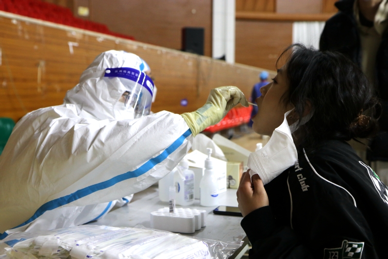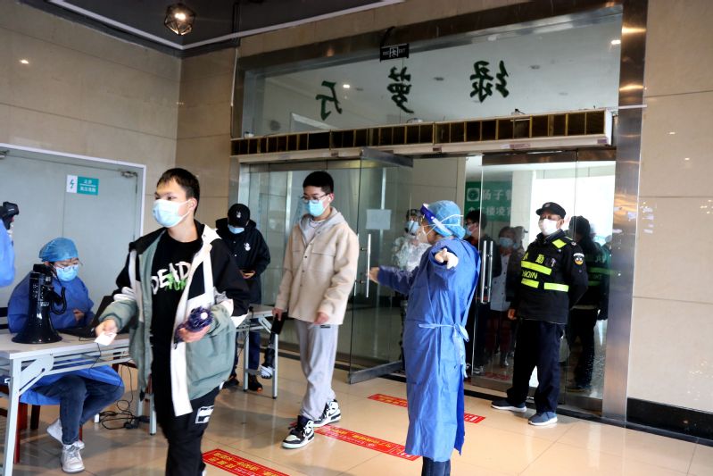 在核酸檢測現(xiàn)場,陸平手持額溫槍,細致耐心地測溫和引導分流著學生們。因安排合理,秩序井然,學校工作人員和醫(yī)務人員配合默契,3個小時就完成了全校近9000人的核酸檢測工作。