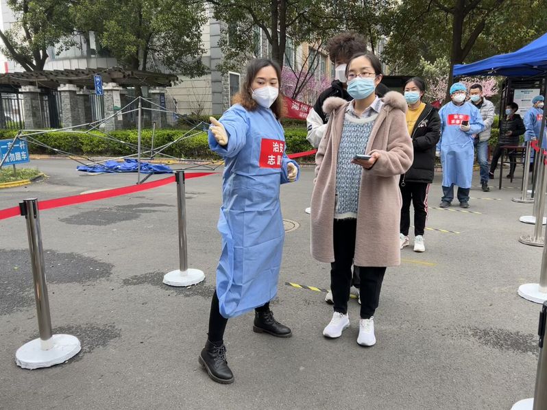 3月19日是馬靜在湖塘鎮(zhèn)北街社區(qū)做治安志愿者的第一天。早上5:40,她就在社區(qū)核酸檢測現(xiàn)場維持秩序,安排居民間隔1米排隊進入檢測通道,引導居民提前打開核酸采樣碼,幫助老人、小孩、孕婦和腿腳不便的人士到指定地點檢測等。盡管嗓子沙啞了,腿腳酸軟了,但看到大家在自己的疏導安排下很快完成核酸檢測工作,自豪感油然而生。