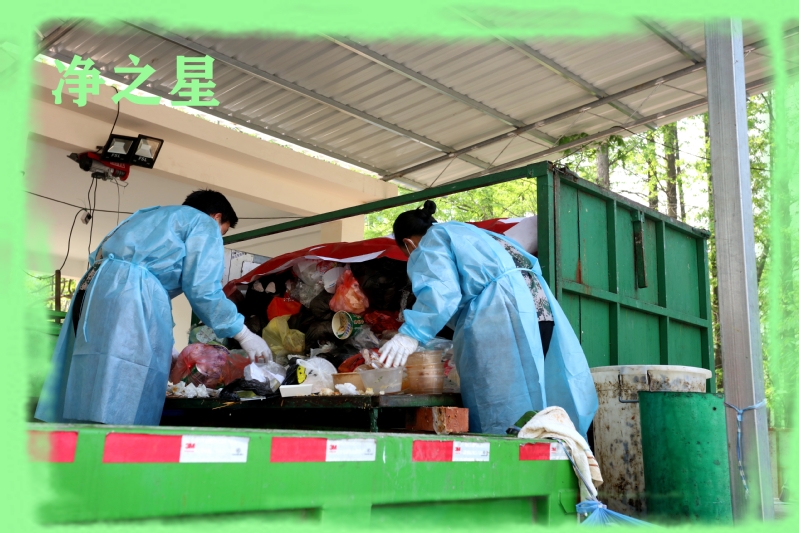 封校防控期間,學(xué)生公寓區(qū)產(chǎn)生的垃圾逐日遞增。不斷來回拉車,每日垃圾分類處理……對于校園垃圾站的工作人員來說,是對身體和精神的雙重考驗(yàn)。出入惡臭的垃圾堆,用雙手對垃圾清理、分類,他們的衣服也許沾滿了污漬,但是他們心靈之美,卻裝點(diǎn)了整潔的校園。汗水與塵土襯托的,是那一個個質(zhì)樸的靈魂。他們是校園里的一顆顆“凈之星”。