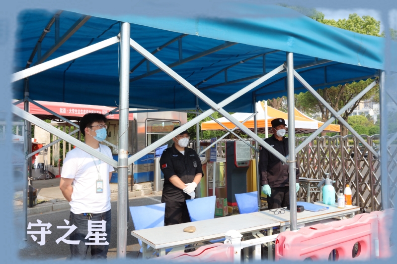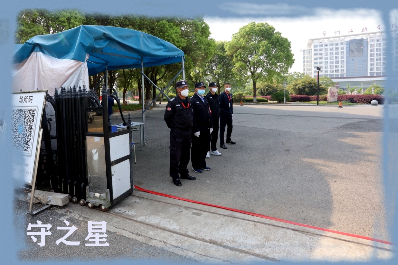 天剛破曉,同學(xué)們或許還未從睡夢中蘇醒,但清晨的陽光下卻立著一個個筆挺的身影。他們輪流值守著學(xué)校最關(guān)鍵的卡口,不敢在這關(guān)鍵時刻有一絲一毫懈怠。“保安”兩個字雖然簡單,幾筆便能書寫,但是,保證全校學(xué)生的安全并不是一件簡單的事情。檢查“兩碼”,測量體溫,將閘門一遍遍開啟、關(guān)閉……盡心盡職是他們最為真實(shí)的寫照。他們是校園里的一顆顆“守之星”。