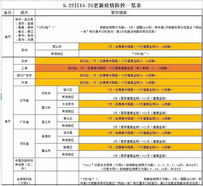 管控規定解釋說明:“三天兩檢”指抵達常州后第1天、第3天核酸采樣,間隔24小時。“三天兩檢”、“7+7”、“3+11”的管控措施都需來常后進行。最后一次核酸檢測須在入校前24小時內進行。