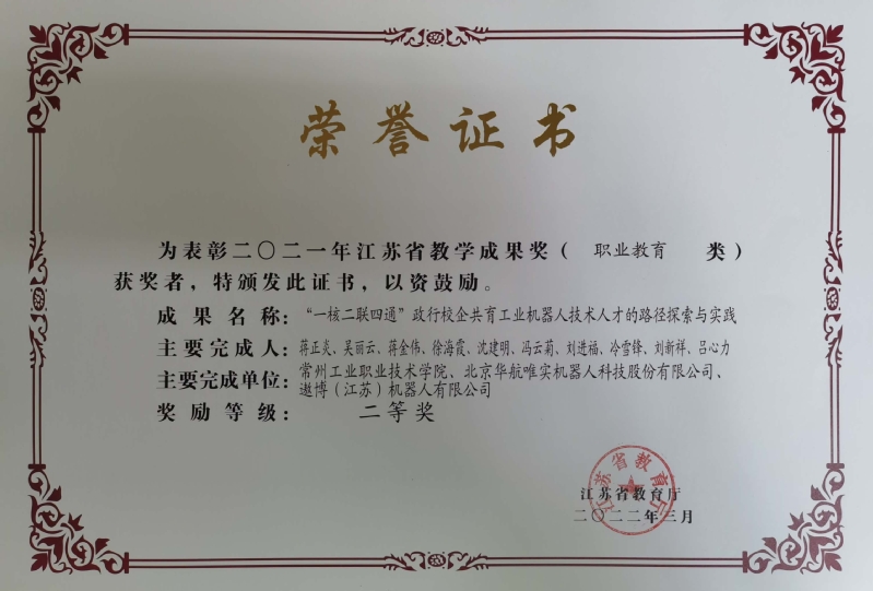 我們與江蘇常發實業集團有限公司、固高科技有限公司等簽訂了合作培養技術人才協議。同時在深圳越疆科技有限公司、北京華航唯實機器人科技有限公司、遨博(江蘇)機器人有限公司等建立了校外實習基地。