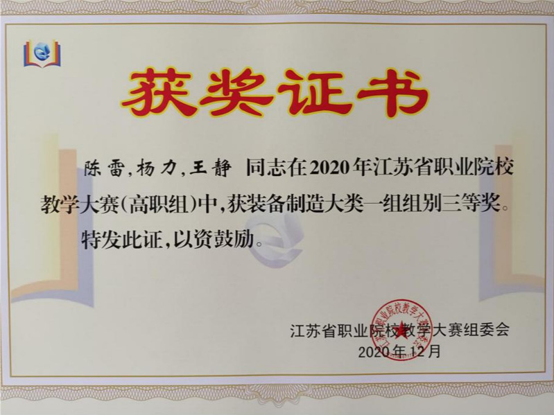 陳雷老師團(tuán)隊(duì)獲得江蘇省教學(xué)能力比賽三等獎