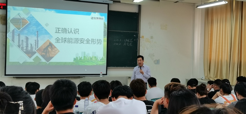 姚慶文從“世界能源危機愈演愈烈”“維護世界安全任重道遠”“打贏我國能源安全主動戰”三個方面深入淺出地講解了全球能源安全形勢。通過詳實的數據和案例,姚慶文指出,能源的爭奪是地區沖突產生的根本因素,世界能源安全危機已愈演愈烈,全球能源危機對中國也造成了較大影響。他還以新能源汽車為切入口,強調必須深入貫徹落實國家能源發展戰略,牢固樹立危機意識和前瞻意識。姚慶文勉勵青年學生要堅定不移推動能源綠色低碳轉型,筑牢能源安全底線,助力能源科技創新,努力成為綠色發展理念的倡導者、踐行者、推動者。