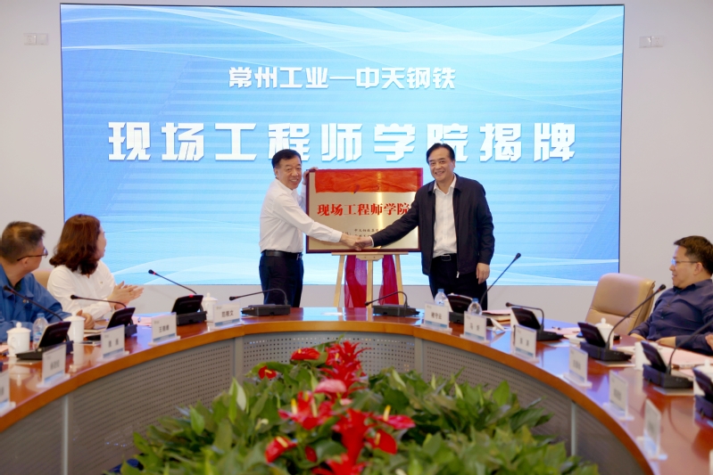 會上,楊勁松與趙金濤共同為“常州工業(yè)-中天鋼鐵”現(xiàn)場工程師學院揭牌。楊勁松表示,中天鋼鐵是學校的重要合作伙伴,雙方充分利用各自優(yōu)勢,在人才培養(yǎng)、科技創(chuàng)新、社會服務(wù)等領(lǐng)域取得諸多成果,并按照“工學結(jié)合”的模式,推動“現(xiàn)代學徒制”人才培養(yǎng)落地。“常州工業(yè)-中天鋼鐵”現(xiàn)場工程師學院將聯(lián)合科研院所、企業(yè)導(dǎo)師與學校導(dǎo)師共同培養(yǎng)具備精操作、懂工藝、會管理、善協(xié)作、能創(chuàng)新的綜合性人才,針對性滿足企業(yè)智能化數(shù)字化生產(chǎn)需要,讓學生留在企業(yè)得到更好的發(fā)展。