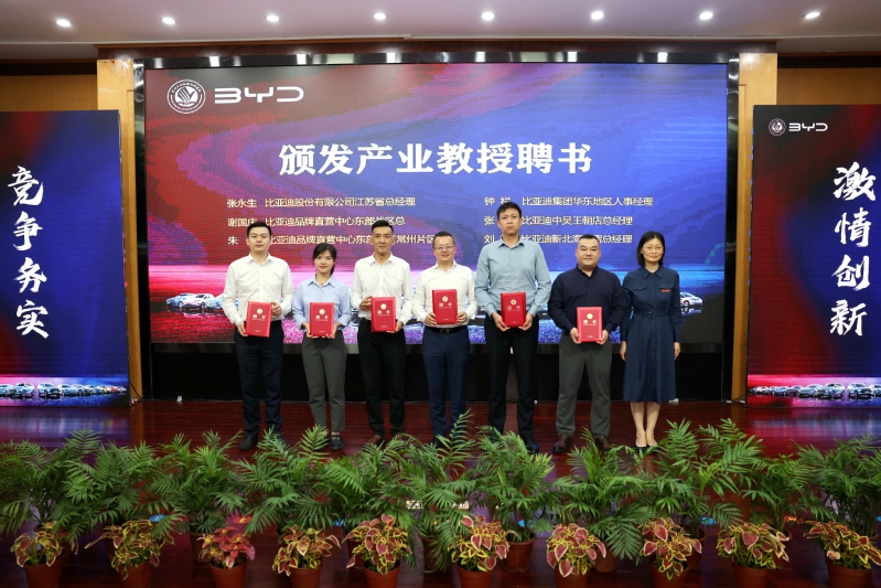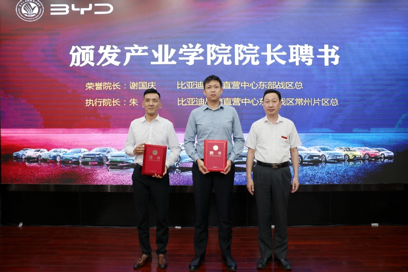參加本次活動的還有比亞迪品牌直營中心東部戰區常州片區總朱健、比亞迪集團華東地區人事經理鐘欄、常州歐派羅集團總經理彭明祥、比亞迪常州各門店總經理,新能源汽車產教融合共同體成員單位代表、我校全體中層干部、師生代表。