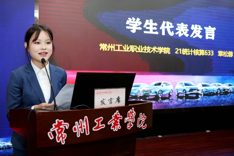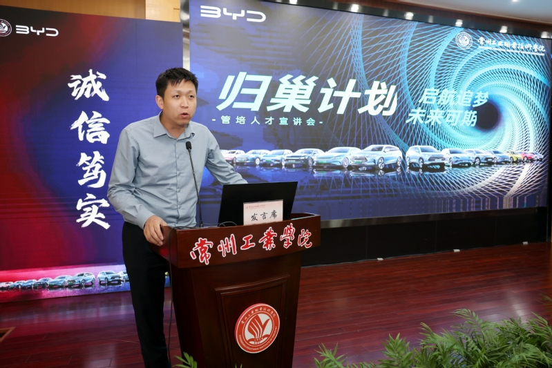 會上,還舉行了常州市新能源汽車產教融合共同體“新能紅盟”揭牌儀式、比亞迪現場工程師培養基地揭牌儀式、校企雙導師聘任儀式等,數字商務學院21統計核算633班章松蓉作為現場工程師班學員代表發言,謝國慶代表比亞迪發布“歸巢”計劃。