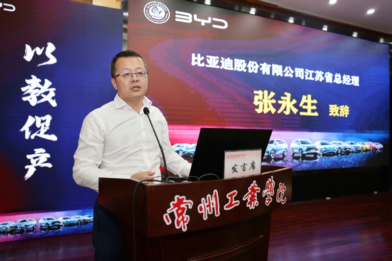 張永生對常州市科教城管委會各級領導的關心表達了謝意。他在致辭中提到,教育關乎現在,關乎未來,企業的發展重在人才。比亞迪從1995發展至今,一直秉承“造物先造人”的理念,把人才培養作為企業發展的第一要務。比亞迪將充分利用校企資源,打造優勢互補、資源共享的協同創新平臺,強強合作,將企業獨立培養人才的模式向校企合作模式轉變,為常州新能源之都建設輸送源源不斷的優勢人才,助力打造萬億級產業集群。