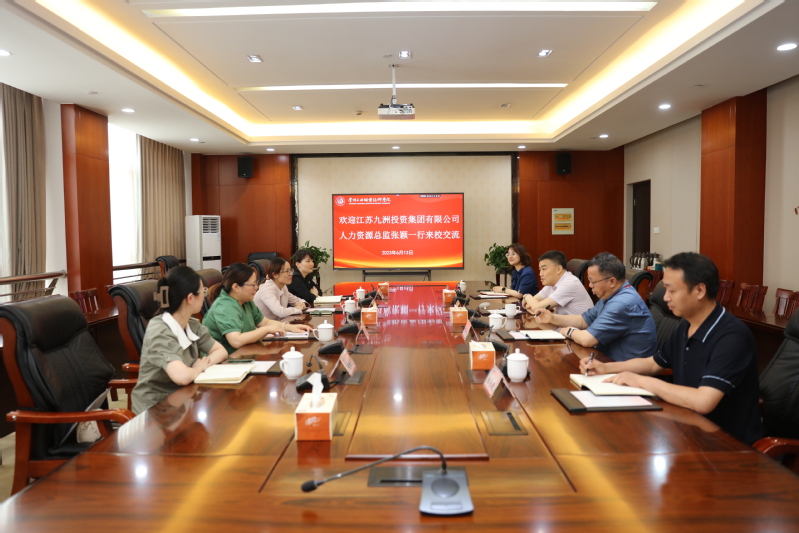 6月13日,江蘇九洲投資集團(tuán)有限公司人力資源總監(jiān)張穎一行來訪我校,洽談校企合作和產(chǎn)教融合試點相關(guān)工作。校黨委書記席海濤出席交流會。