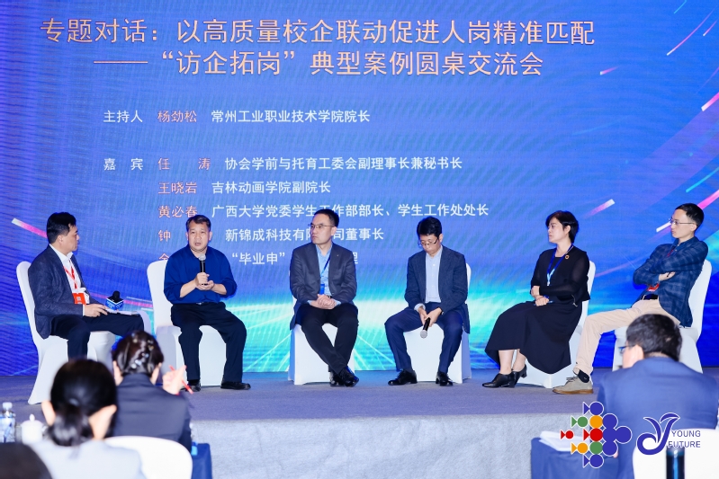 楊勁松主持“訪企拓崗”典型案例圓桌交流會。會議“以高質量校企聯動促進人崗精準匹配”為主題,他與各位參會代表共同探討“訪企拓崗”下高校畢業生就業工作。參會代表們表示在未來的一年里,大家將積極貫徹教育部《關于做好2024屆全國普通高校畢業生就業創業工作的通知》要求,圍繞畢業生就業工作大局,充分發揮橋梁紐帶作用,加強產教融合載體建設,深化就業指導體系改革,助力畢業生高質量就業。