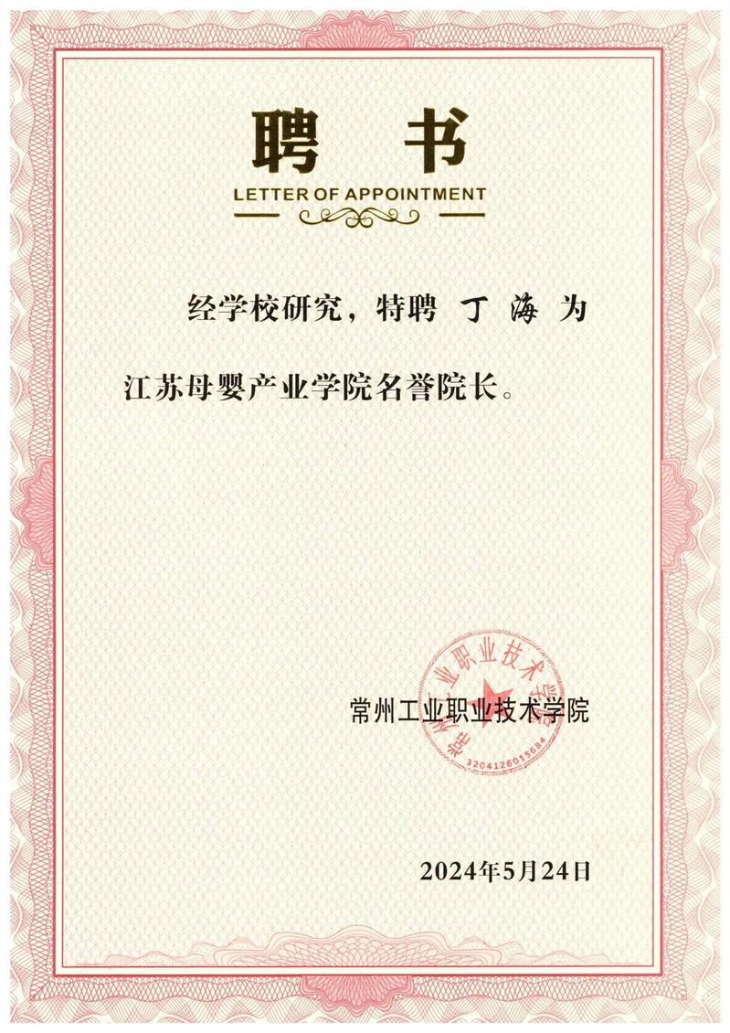 蘇豪控股集團(tuán)副總裁丁海接待了席海濤一行。雙方圍繞江蘇母嬰產(chǎn)業(yè)學(xué)院建設(shè)、職教出海等議題進(jìn)行了深入的溝通交流,并就后續(xù)合作達(dá)成了初步的意向。席海濤為丁海頒發(fā)江蘇母嬰產(chǎn)業(yè)學(xué)院名譽(yù)院長(zhǎng)聘書(shū)。
