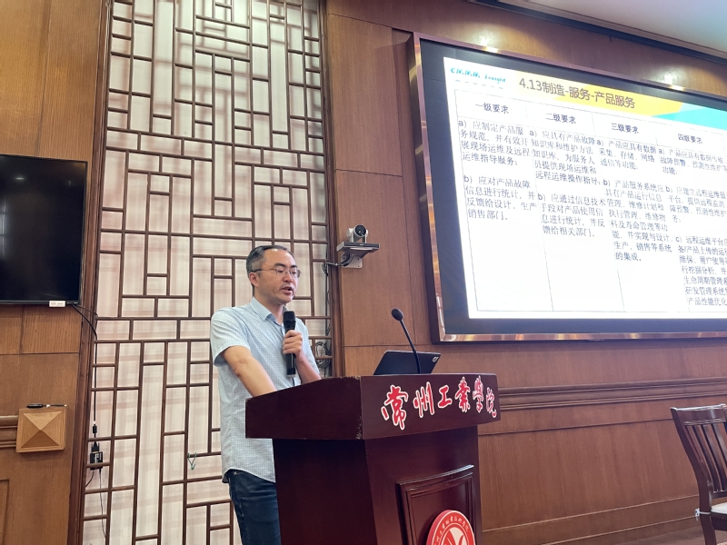 席海濤在開班儀式上致辭。他強調,作為我市首個國家級產教聯合體——常州新能源產教聯合體的牽頭院校,我校將依托武進國家高新技術產業開發區,與聯合體其他單位攜手,積極推進聯合體建設。大家始終堅持特色發展,推動教育教學改革,優化專業結構,打造新能源智能制造、新能源材料、新能源高端服務三大專業集群,培養產業所需高素質技術技能人才,為服務常州“532”發展戰略和“新能源之都”建設貢獻職教力量。多年來,我校在推動企業智能化改造、信息化建設方面積累了豐富經驗,在長三角周邊形成了一定知名度。舉辦此次智能制造系列活動,是我校推進聯合體建設,服務地方經濟、促進數字化轉型的重要嘗試。CMMM模型的普及與推廣,對提升我國制造業的整體水平,具有非常重要的意義。他希望通過此次培訓,助力新能源產教聯合體建設,推動制造業向更高水平邁進,為新能源產業的繁榮發展貢獻常州力量。