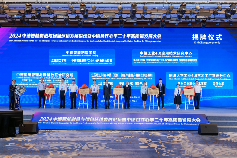 7月8日,2024中德智能制造與綠色環境發展論壇暨中德合作辦學二十年高質量發展大會在常舉行。我校黨委書記席海濤、校長楊勁松參加會議并為“同濟大學工業4.0學習工廠常州分中心”揭牌。