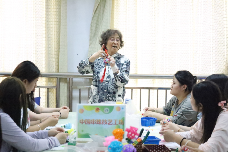 談及串珠社,朱文霞總是滔滔不絕,滿懷激情。社團(tuán)初創(chuàng)時(shí),僅有一位輔導(dǎo)員和一位指導(dǎo)老師,分別負(fù)責(zé)管理和技術(shù)指導(dǎo)。隨著時(shí)光的流逝,管理崗位上的輔導(dǎo)員幾經(jīng)更迭,指導(dǎo)老師隊(duì)伍也從她1人擴(kuò)展至3人,她親眼見(jiàn)證了年輕輔導(dǎo)員們的成長(zhǎng)與轉(zhuǎn)型。