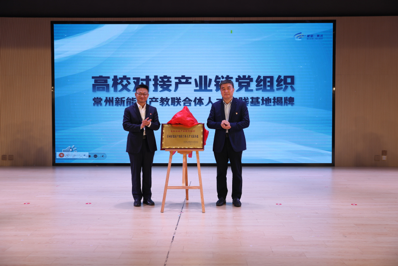 活動中,席海濤和陳江為常州新能源產(chǎn)教聯(lián)合體人才實踐基地揭牌,雙方就協(xié)同培養(yǎng)高質(zhì)量人才達成合作。