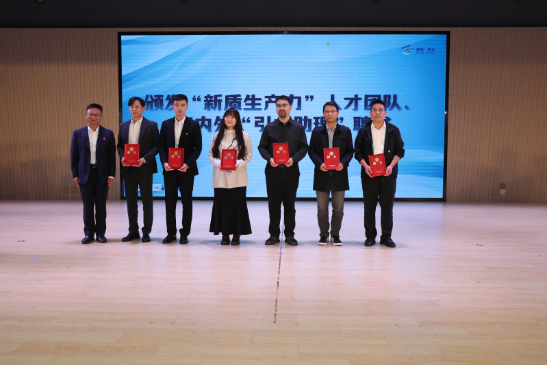 陳江為我校優(yōu)秀教師代表劉進福、武棟、于涌杰、沈雷、吳晶津、任知洋等頒發(fā)“新質(zhì)生產(chǎn)力人才團隊代表”證書和海內(nèi)外“引才助理”聘書。