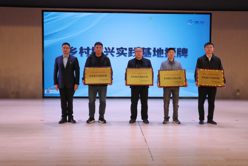 檀祝平為常州新能源產(chǎn)教聯(lián)合體同心教育實(shí)踐基地和江蘇母嬰產(chǎn)業(yè)學(xué)院禮嘉分院揭牌;數(shù)字商務(wù)學(xué)院黨總支書記馬軍為鄉(xiāng)村振興實(shí)踐基地授牌。