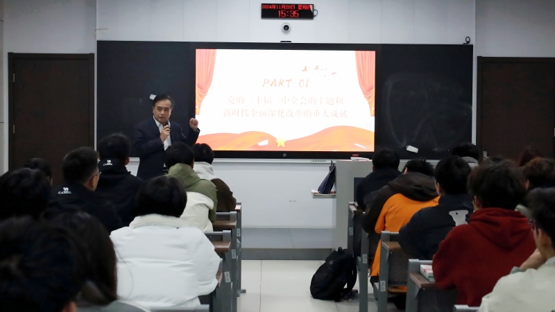 11月28日,黨委副書記、校長楊勁松為軟件技術(shù)專業(yè)的學生講授“進一步全面深化改革 推進中國式現(xiàn)代化——學習黨的二十屆三中全會精神”專題思政課。