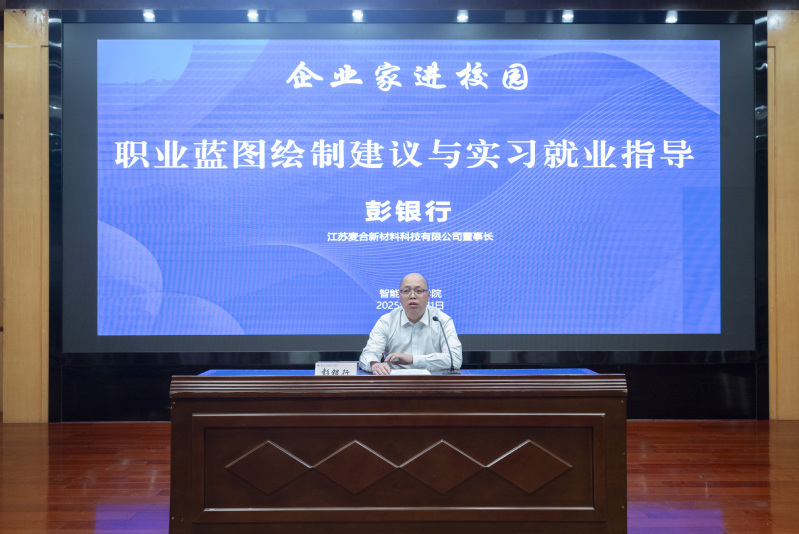 4月11日,智能控制學院開展“企業(yè)家進校園”系列活動,邀請江蘇麥合新材料科技有限公司董事長、我校優(yōu)秀校友彭銀行,為2024級學生開展“職業(yè)藍圖繪制建議與實習就業(yè)指導”主題講座。