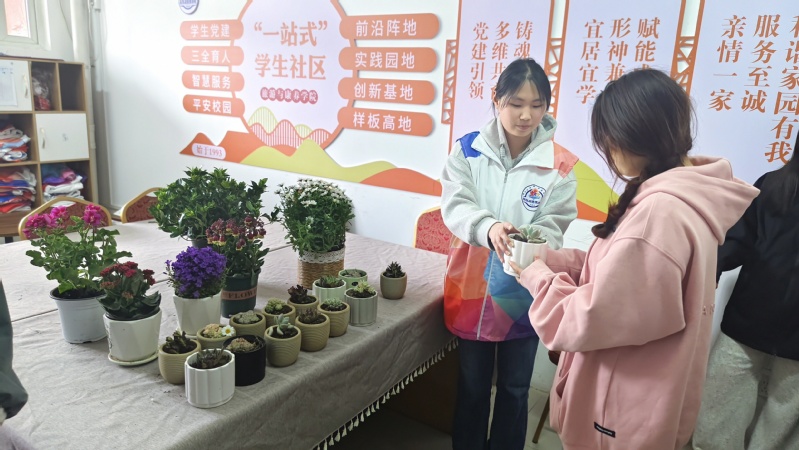 與此同時,“綠植領養計劃”同步啟動。學院準備了30余盆綠蘿、吊蘭、虎皮蘭等易養護的綠植,參與同學可免費認領一盆植物,并獲贈養護手冊。活動要求領養者定期記錄植物生長狀態,并通過線上、線下方式分享養護心得,學期末還將評選“最佳護綠達人”。