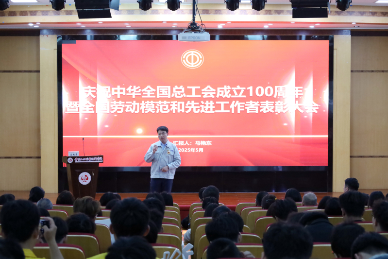 宣講會上,馬艷東回憶了4月28日在北京參加慶祝中華全國總工會成立100周年暨全國勞動模范和先進工作者表彰大會的經過,談了自己的獲獎感言:“我胸前的這些榮譽,不是憑空得來的,每一枚獎章背后,都是數不清的汗水和堅持。榮譽加身不是終點,而是新的起點?!薄霸蹅儗W校向來人才輩出,從這里走出的全國勞模不止我一個,還有師兄鄧建軍、吳宏勝,這說明只要肯下苦功夫,機會永遠會青睞有準備的人。”他鼓勵同學們,每一滴汗水都有回響,每一份堅持都是未來的饋贈。不要被“不可能”嚇退,更不要被“做不到”定義?!爸灰銐蚺Γ谧母魑煌瑢W都可以當勞模!”