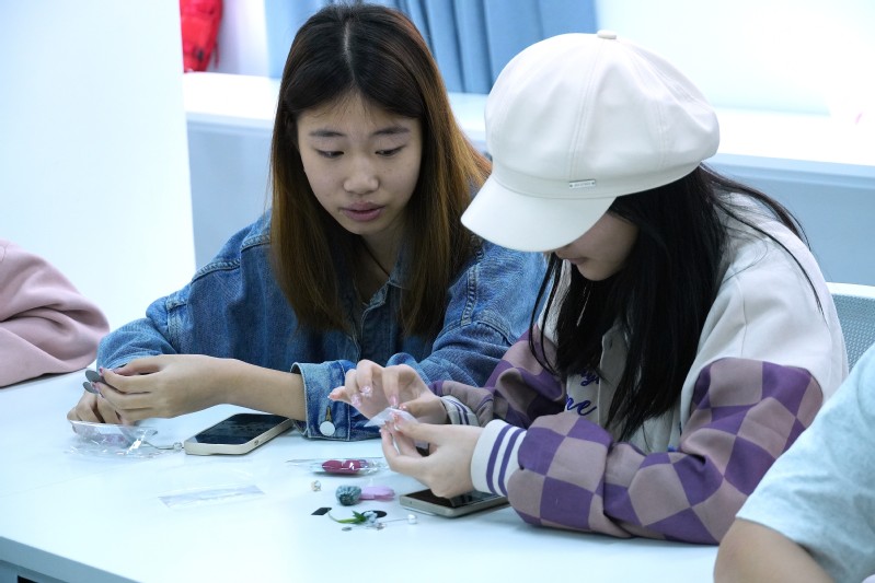 DIY胸針制作環節中,同學們展現出極大的熱情與專注。從挑選材料、設計樣式到精心制作,每個環節都凝聚著同學們的真摯情感。有的同學反復調整胸針的配色,力求完美,還有的同學在裝飾細節上格外用心,將自己的創意融入其中。小小的胸針不僅承載著心意,更成為情感的紐帶。