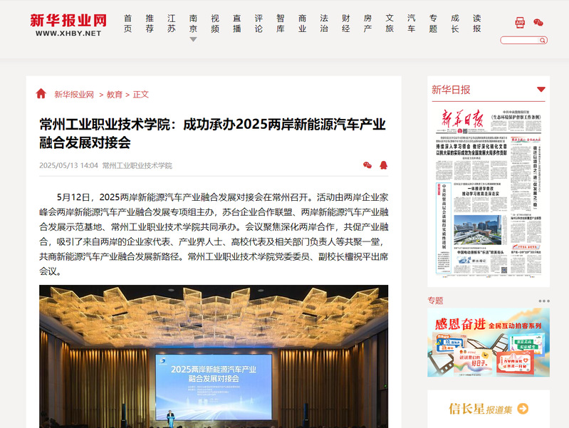 新華報業網:常州工業職業技術學院:成功承辦2025兩岸新能源汽車產業融合發展對接會