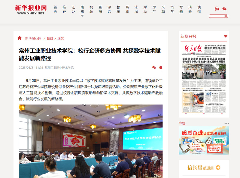 新華報業網:常州工業職業技術學院:校行企研多方協同 共探數字技術賦能發展新路徑