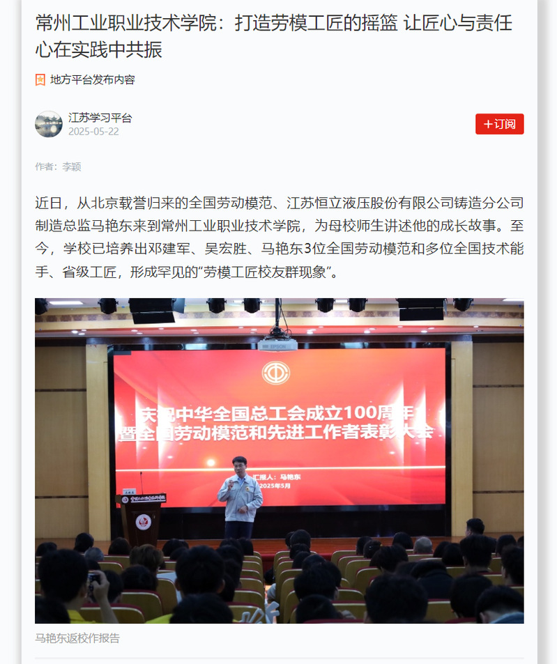 學(xué)習(xí)強國:常州工業(yè)職業(yè)技術(shù)學(xué)院:打造勞模工匠的搖籃 讓匠心與責(zé)任心在實踐中共振