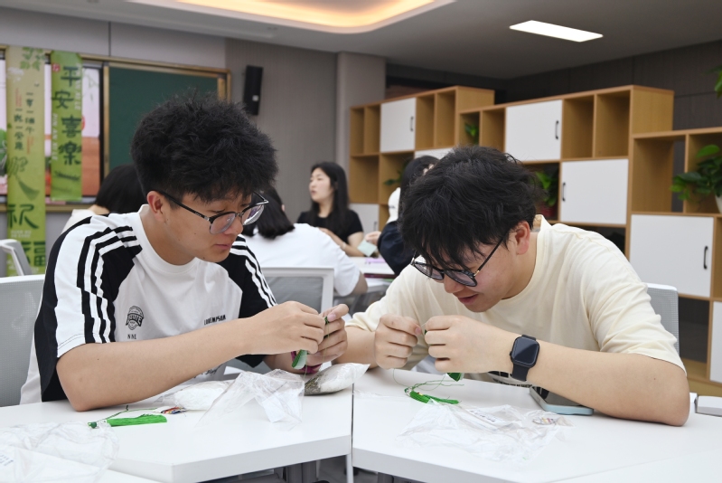 巧手傳承非遺技藝。團員青年齊聚學生活動中心,學習傳統香囊制作技藝。活動現場,同學們認真穿針引線,將艾草、菖蒲等中藥材縫制成各式香囊,既體驗了傳統手工藝的魅力,又深入了解了端午佩香囊的民俗文化內涵?;顒咏Y束后,同學們將自己制作的香囊贈送給老師和同學,傳遞節日祝福。