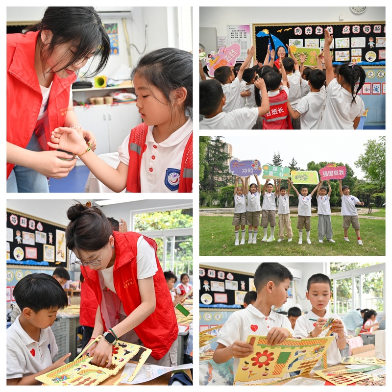 結合端午文化主題,志愿者們帶領小學生制作微型龍舟模型,編織寓意平安的五彩繩。24國貿532班顏靜茹講解道:“龍舟象征團結拼搏,彩繩承載安康祝福。”孩子們將完成的龍舟模型排列成“中國龍”造型,在勞動實踐中感悟傳統文化精髓。