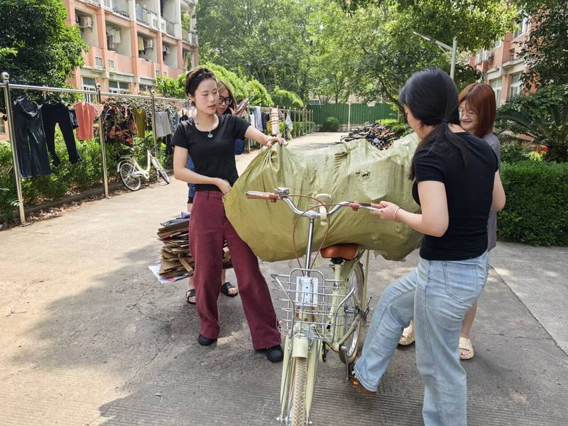 變廢為寶,舊物煥發(fā)新生機(jī)。學(xué)生們踴躍參與舊物回收行動(dòng),將閑置的舊衣物、快遞紙盒等帶到活動(dòng)現(xiàn)場。手工社成員現(xiàn)場教學(xué),指導(dǎo)同學(xué)們將這些廢棄物改造成環(huán)保袋、筆筒等實(shí)用物品。“快遞盒硬度足夠,裁剪后貼上裝飾布,就能變成收納盒。”手工社成員莫云杰一邊演示一邊介紹。活動(dòng)不僅減少了垃圾的產(chǎn)生,更讓同學(xué)們體會(huì)到“物盡其用”的成就感。