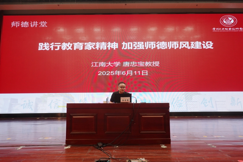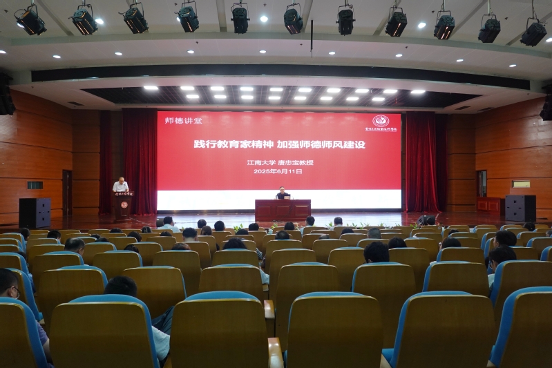 6月11日,我校舉行黨委理論學習中心組(擴大)集體學習會暨師德師風專題講座。江南大學馬克思主義學院唐忠寶教授受邀作“踐行教育家精神 加強師德師風建設”專題報告。會議由黨委副書記毛伯民主持,學校全體教職工參加會議。