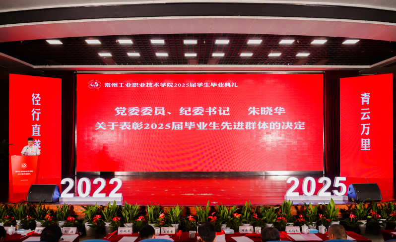 黨委副書記毛伯民宣讀了《關于表彰2025屆優秀畢業生的決定》。黨委委員、副校長吳麗云宣讀了《關于聘任2025屆校友聯絡員的決定》。黨委委員、紀委書記朱曉華宣讀了《關于表彰2025屆畢業生先進群體的決定》。黨委委員、宣傳部部長季華為“愛崗敬業”先進群體、“自強不息”先進群體、“衛國戍邊”先進群體代表授旗。