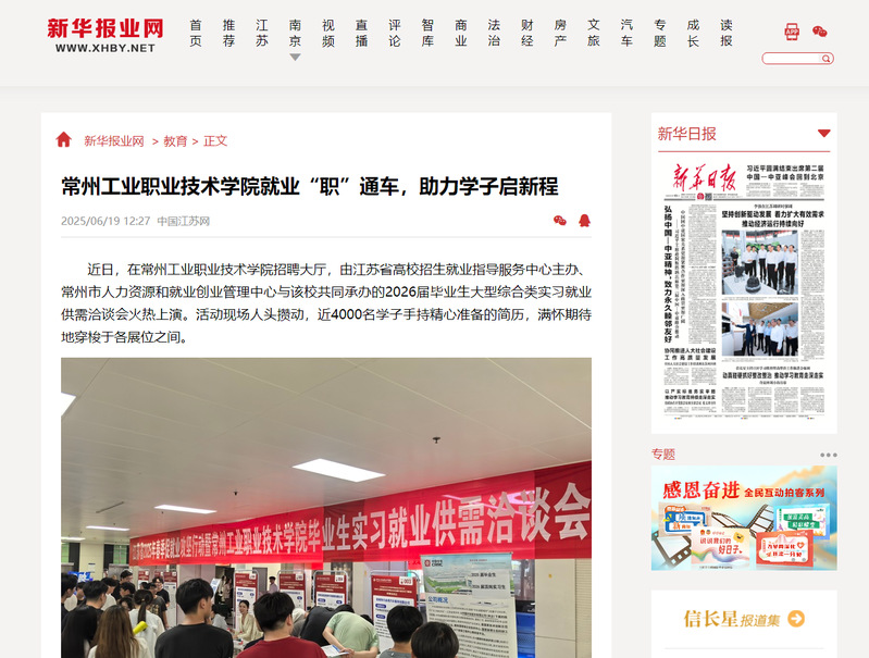 新華報業網:常州工業職業技術學院就業“職”通車,助力學子啟新程