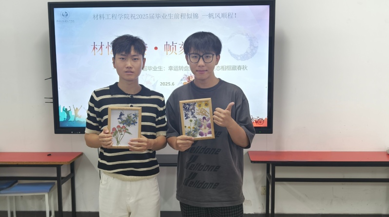 活動(dòng)伊始,畢業(yè)生們收到了飽含深情的“畢業(yè)三件套”:印有?;蘸蛯W(xué)院特色的定制帆布袋、刻有個(gè)人姓名的檀木印章,以及可自由創(chuàng)作的干花生態(tài)相框。其中,印章采用傳統(tǒng)篆刻工藝,以“以材為印,銘記初心”為設(shè)計(jì)理念;生態(tài)相框則選用可降解材料,鼓勵(lì)學(xué)生將校園里的銀杏葉、薔薇花瓣等元素融入創(chuàng)作。學(xué)院黨總支書記嵇天培表示:“這些禮物承載著學(xué)院對(duì)每位學(xué)子的期許,希望它們能成為連接母校與畢業(yè)生的情感紐帶?!?/p>