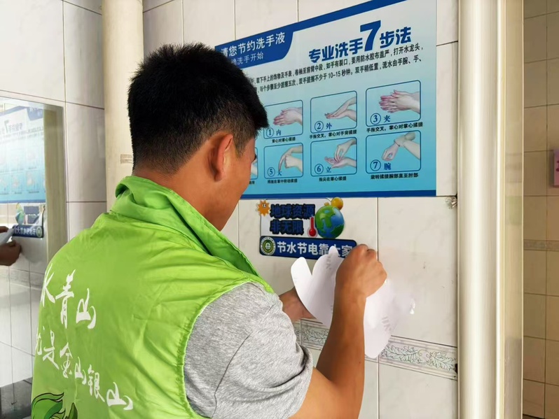 簽名承諾之后,行動即刻展開。協(xié)會精心準備了印有節(jié)水、節(jié)電、節(jié)能提示的醒目標語貼紙,分發(fā)到參與者手中。同學們化身“綠色使者”,主動將標語張貼在宿舍樓的開關旁、衛(wèi)生間的用水處、食堂取餐窗口以及教室的電器設備等關鍵位置。這些小小的標語如同無聲的提醒,在同學們日常學習、生活的必經之處,構筑起潤物細無聲的“節(jié)能宣傳陣地”,時刻引導大家從舉手之勞做起,珍惜每一滴水、每一度電、每一份資源。