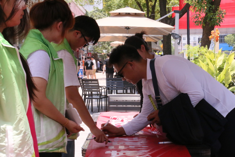 活動現場,一條印有鮮明活動口號的橫幅成為凝聚共識的焦點。同學們鄭重簽下自己的姓名,每一筆都承載著對節(jié)約理念的認同和踐行綠色生活方式的堅定承諾。簽名不只是形式,更是將節(jié)能意識深植內心的生動儀式。