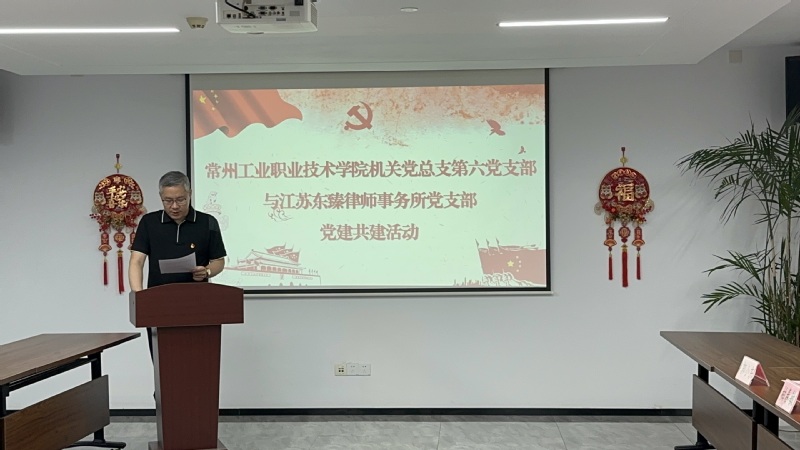 會上,江蘇東臻律師事務(wù)所主任徐峰介紹了律所相關(guān)情況。朱東陽和我校機(jī)關(guān)黨總支第六黨支部書記崔曉曙先后介紹各自黨支部的概況及黨建工作開展情況。